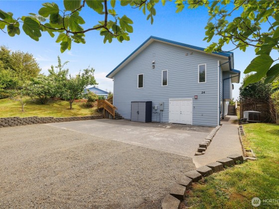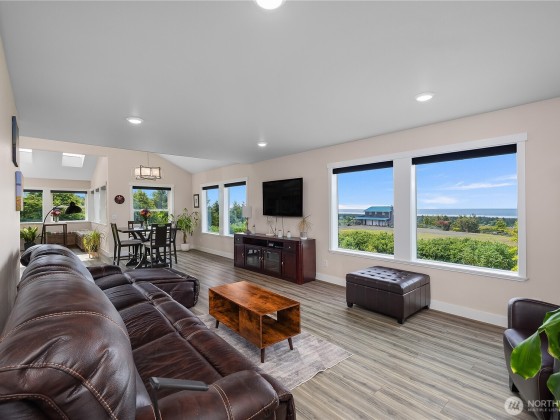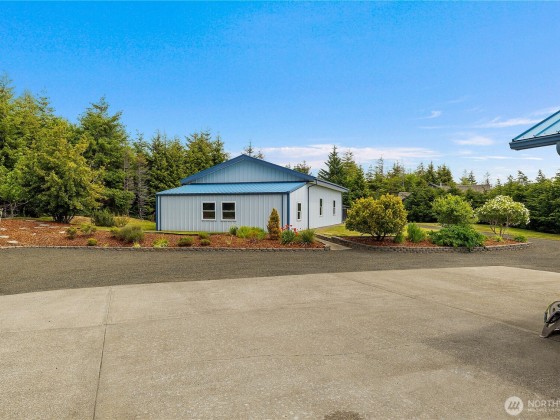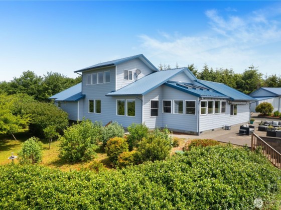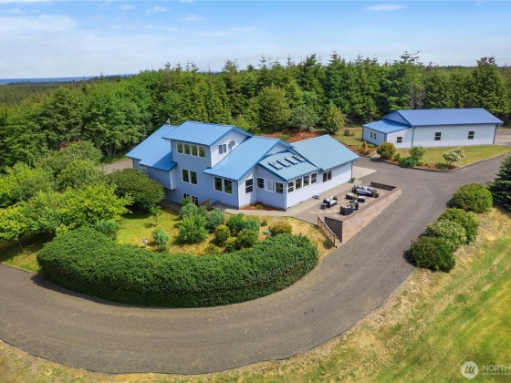 Exceptional location w/mesmerizing Ocean Views! Set on nearly 7 acres of usable land, this property includes 1,890 SF shop, 2-car garage & a beautifully remodeled home offering 2,558 SF on main/upper level plus a finished 2,158 SF basement. The stylish kitchen is a showstopper—vaulted ceilings, skylights & jaw-dropping views. The open-concept living, dining & kitchen area is designed to soak in every angle of the scenery through expansive windows. The primary suite impresses w/double sinks & luxurious walk-in tile/glass block shower. Perched high for panoramic sunsets, the upper level delivers the ultimate coastal lifestyle. Just minutes to beach access down the road. This rare Beach Estate is a must-see opportunity-don’t let it slip away!