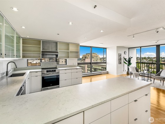 Commanding spectacular views from one of Seattle’s highest points atop First Hill, Parkview Plaza’s sophisticated double-corner pied-à-terre places you at the doorstep of the city amidst treelined streets, historic mansions and esteemed institutions. Floor-to-ceiling windows and private covered terraces flood open spaces with natural light. The entertainer’s kitchen is thoughtfully designed with quartz countertops, a Perlick wine cooler, Bosch dishwasher and under-cabinet lighting. Additional comforts include a large bonus pantry, Nuheat floors, Toto Washlet and custom storage throughout. Enjoy a skylit indoor pool, fitness studio, sauna and tranquil courtyard—all within a secure, well-managed community steps from the Frye and Town Hall.