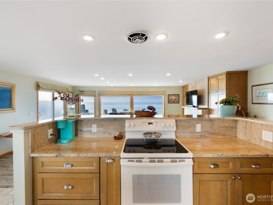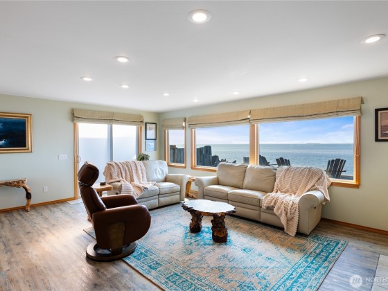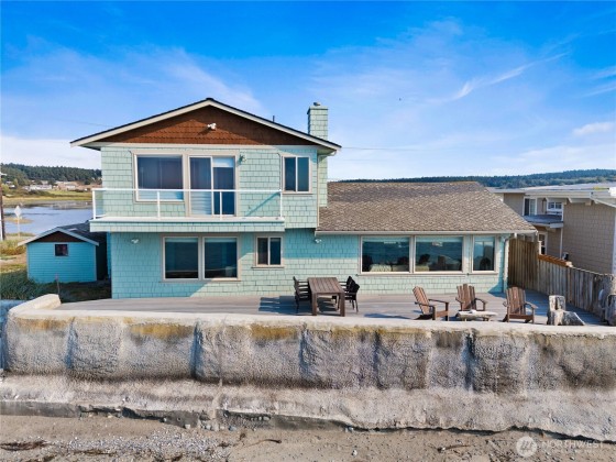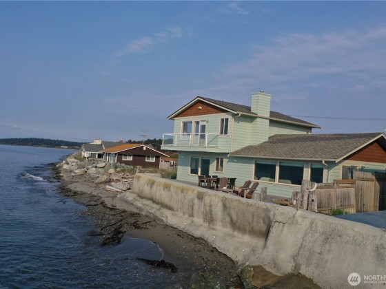 A.View.From.Every.Single.Room! 3 bedroom stunner on spectacular West Beach! This elegant residence offers an exceptional living experience with its extraordinary western oceanfront views that will captivate and inspire you every day. Open vacant land to the north, Swantown Lake across the street boasting a near 360 degree view of water! The home has been completely renovated to ensure modern conveniences at your disposal. Granite counters, LVP flooring, open great room with natural gas fireplace and a sprawling upstairs primary suite, complete with sauna, provides an elevated perspective of the surrounding views. Private stone wall protecting your privacy, over 1000 feet of wrap around decking. Concrete bulkhead - home has never flooded!