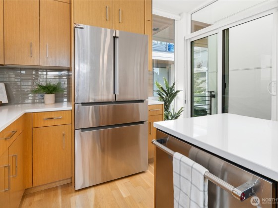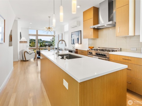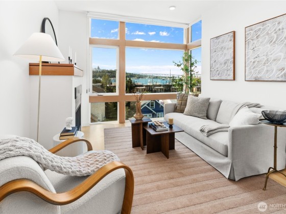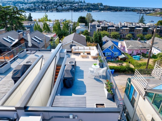 Sophisticated & meticulously maintained townhome in the heart of Eastlake showcasing floor-to-ceiling windows w/ sweeping 180+ degree views of the city, Space Needle, Lake Union, & Olympic Mountains! Solid oak hardwood floors complement striking floating steel & glass stairs for bright, open living.Sleek & spacious kitchen boasts quartz countertops & SS appliances.Watch the sunset while sipping your favorite drink on the rooftop lounge w/ outdoor kitchenette. Custom-built-ins & additional storage containers amplify space utilization. Primary w/ spa-like ensuite, heated flrs and AC. Two blocks to Lake Union for water enthusiasts.Stroll to cafes, dining, & grocery.Moments to downtown & I-5 access.Complete w/ off-street parking & NO HOA dues!
