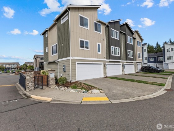 FLOODED WITH NATURAL LIGHT, this unique 3-level end-unit townhome lives like a single-family home. Immaculate 3 bedrooms, 2.5 bathrooms, plus a versatile bonus or flex room, open concept, attached 2-car garage, smart-home, in a gated community. Stainless steel appliances, A/C, island, eating bar, plenty of counter space, and BONUS full-size washer/dryer is included! First floor features living, bonus or flex room. Second floor features a family room, laundry room, dining, kitchen, and bathroom. Third floor features primary ensuite, 2 additional bedrooms and bathroom. Impeccably maintained with access to trails, parks, clubhouse, and just minutes away from shopping and dining. With a fresh, new feel, this home is ready for you to move in!