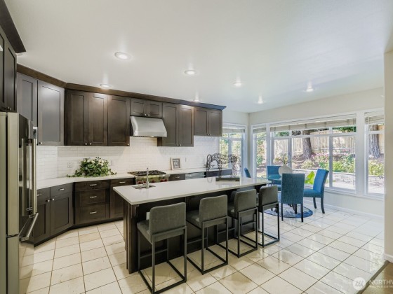 Well maintained & Beautifully upgraded 5-6 bed, 2.25-bath gem in highly desirable West Bellevue. Steps from Enatai Elementary, this home features hardwood flooring throughout, guest suite on the main, fresh interior paint, upgraded lighting, and fully renovated kitchen, bathrooms with slab granite countertops, alder cabinets, SS appliances and modern light fixtures. Recent upgrades include washer/dryer, AC, a heater, and an epoxy-coated garage floor. The professionally designed backyard retreat offers a huge, covered patio with two outdoor islands, perfect for year-round entertaining, surrounded by lush landscaping and a full fence for privacy. Enjoy top-rated Bellevue schools and an unbeatable location just minutes from downtown Bellevue.