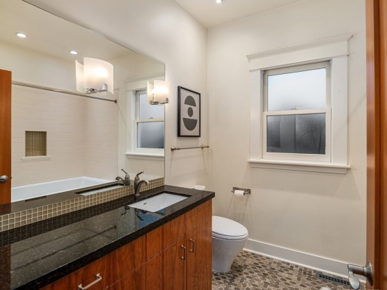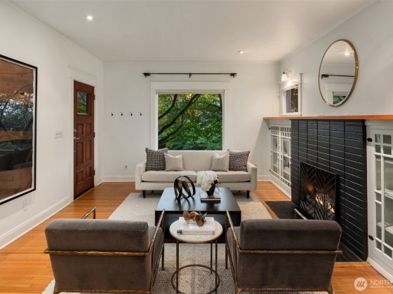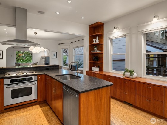 This classic Queen Anne 1905 Craftsman bungalow has been thoroughly renovated while maintaining period charm at every corner. Warm + inviting interior includes vintage detailing such as sleek oak hardwoods, high ceilings, stunning built-ins + brick fireplace. Open-concept space features formal bright dining room with expansive bay window. Highlights of upgraded chef’s kitchen are stainless appliances, Viking range, custom cherry cabinets, granite counters + eye-catching backsplash. Home office nook. Entertainers will love the easy access to deck overlooking fenced + thoughtfully landscaped backyard sanctuary. Upgraded bath + great lower-level space. Near parks, restaurants + public transit.