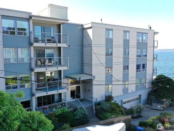 {Stunning Alki Beach Condo w/Panoramic Mt. & Sound Views!} Newly updated Ground Floor Unit w/extra large deck offering unobstructed mountain & sound views. Large primary bedroom w/bath & walk in closet. Guest room is also large. Additional flex/bonus space can be utilized as an office, reading nook, or ? Newer solar blinds. Bonair Condominiums have a private sauna & swimming pool w/elevators. Secured garage w/assigned parking spot. Building has secured lobby entrance w/professional management. Ideally located just steps from Alki Beach & close to restaurants, parks, etc. Walk or ride bicycles down Alki's boardwalk or people watch from your deck. No rental cap. HOA dues cover water, sewer, garbage, gas, cable & earthquake ins. Sunsets Await!