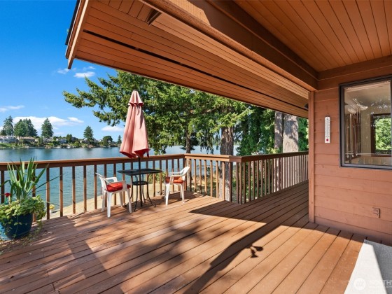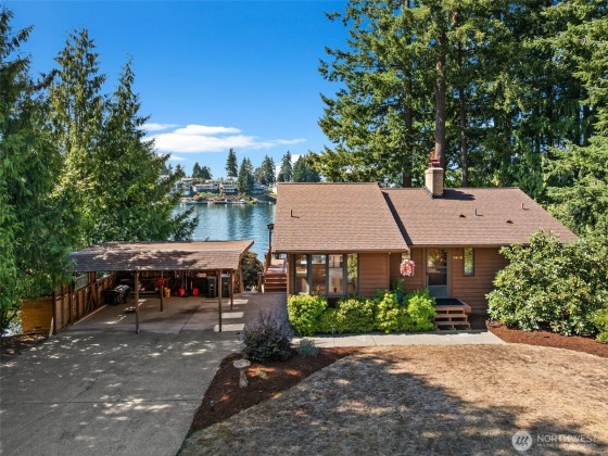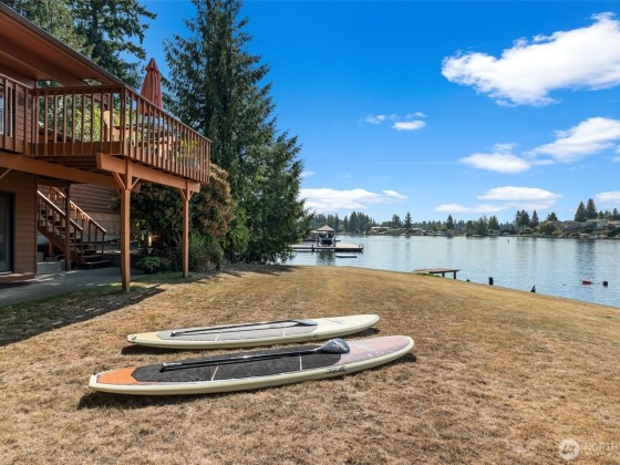Discover this cozy retreat with approximately 100 feet of low-bank frontage on beautiful Lake Tapps. Nestled on a generous lot. Inside, you’ll find plenty of charm perfect for relaxing after a day on the water. The basement adds great potential for a studio or home office. Step outside and enjoy the spacious deck and expansive yard, giving you lots of room to relax, play, or entertain with that beautiful lake view as your backdrop. This property offers a rare opportunity to design and build the big, beautiful lakefront home of your dreams. Enjoy the rare combination of affordable lakefront living with room to grow. Whether you’re looking for a weekend getaway or a full-time residence, this Lake Tapps gem is ready to welcome you.