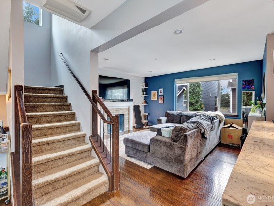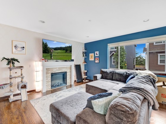 This stand-alone townhouse offers the perfect blend of comfort and convenience in a quiet, well-kept community. The open layout is filled with natural light form oversized windows and a cozy electric fireplace in the living room. The modern kitchen included granite counters, stainless steel appliances, and an open concept dining area that leads to a covered balcony. Upstairs, you will find the spacious primary suite with a walk-in closet and bath, as well as two additional bedrooms that share a full bath. Enjoy an attached 2-car garage, abundant storage, and low HOA dues. I-5, Alderwood Mall, and transit centers all nearby!