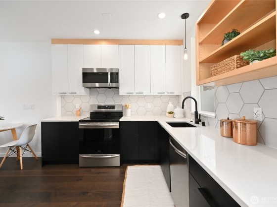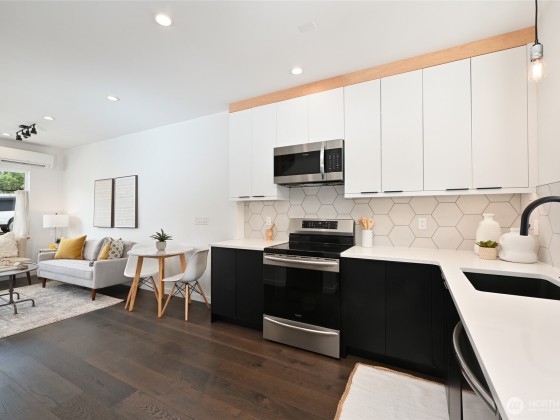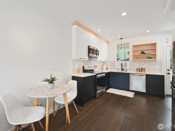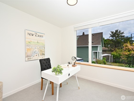 Unbeatable West Ballard location – Net Zero Ready, healthy & green 2020-built home by award-winning Green Canopy Homes. Earth-friendly materials and ~250% more energy efficient systems than typical construction. Lots of natural light, west-facing top-floor deck, A/C & steps to it all. All 3 bedrooms are up with top floor hosting spacious Primary Suite with 2 sinks, walk-in closet, large shower & the west-facing view deck. Upper 2nd floor has 2 beds & full bath & main floor lives like great room with living, dining & kitchen all together. Quick stroll to Ballard scene for coffee/shopping/restaurants & easy bike routes to downtown Seattle and South Lake Union. You will love living here!