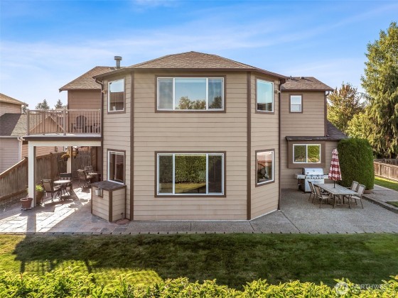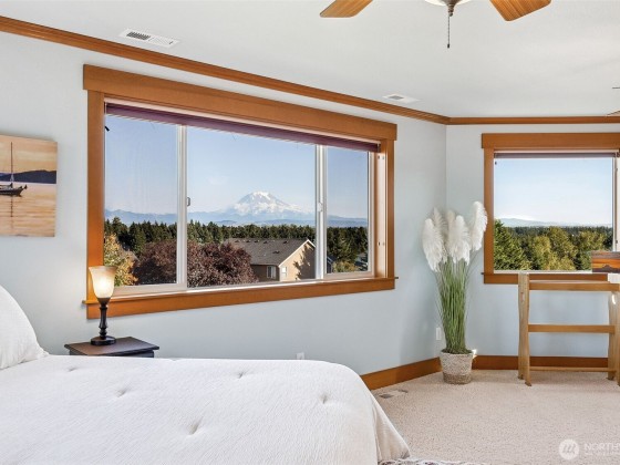 Beautifully remodeled Wilshire Estates Home W/breathtaking Mt. Rainier views! Remodeled kitchen W/custom cabinetry, crown molding, soft-close/pull-outs, under-cab lighting, tile backsplash, granite counters, gas range W/pot filler, dbl oven-all apps stay! Ceramic tile floors, upgraded carpet/pad, wood-wrapped windows & solid-core interior doors/millwork! Fresh ext. paint(6 yrs) & newer roof(9 yrs). Formal dining, office/den W/FP, & family rm W/surround sound, FP & crown molding. 2 guest rms W/adjoining rm+ guest bath. Expansive primary W/sitting rm, FP, wet bar, dual WI closets, deck & spa-inspired bath W/skylights, quartz counters, jetted tub & tile floors. Outdoor living W/slate floors, FP, speakers & motorized awning! See features list!
