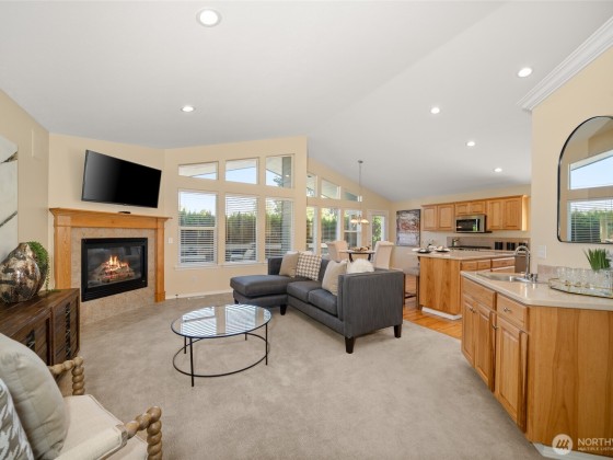 Discover effortless main floor living in this custom-built zero step 3 bed, 3 bath rancher with a 2-car garage situated in the highly desirable Woodfield gated community. Walk in your front door where you are greeted with vaulted ceilings, open concept living room with gas fireplace & wet bar, kitchen with high end stainless steel appliances, island & walk in pantry, a spacious great room & both formal & informal dining. Enjoy two primary suites, each with walk-in closets & ensuite bathrooms, plus a third bedroom ideal for a guest room or office. Relax on the covered back deck or take advantage of the community rec center & refreshing saltwater pool. Conveniently located near shopping, dining, parks, & Manito Golf & Country Club.