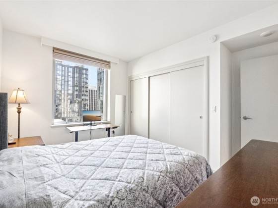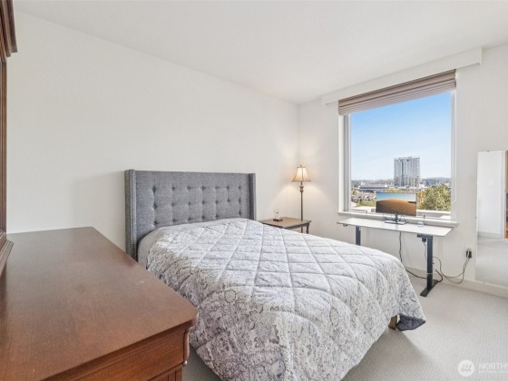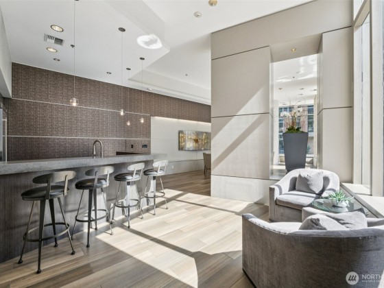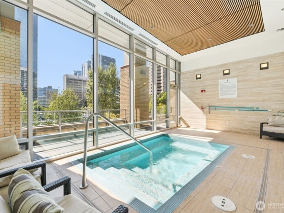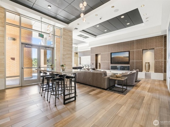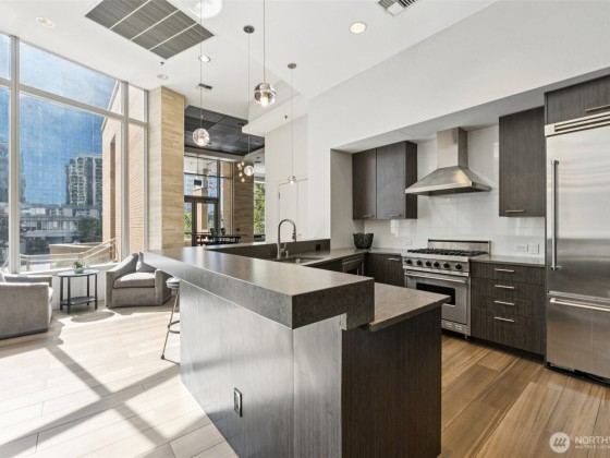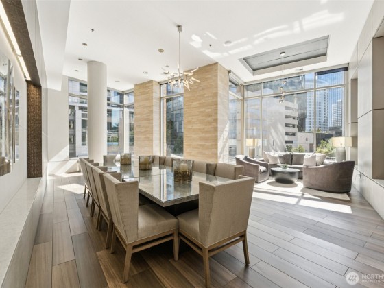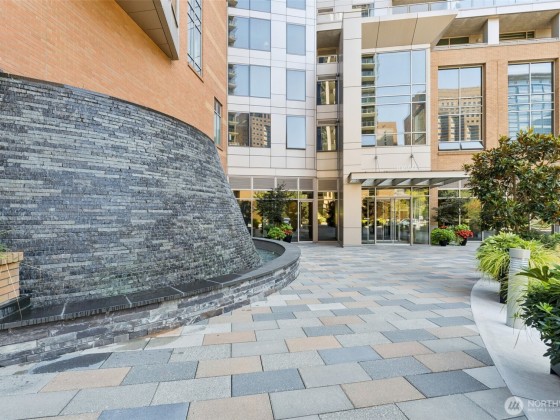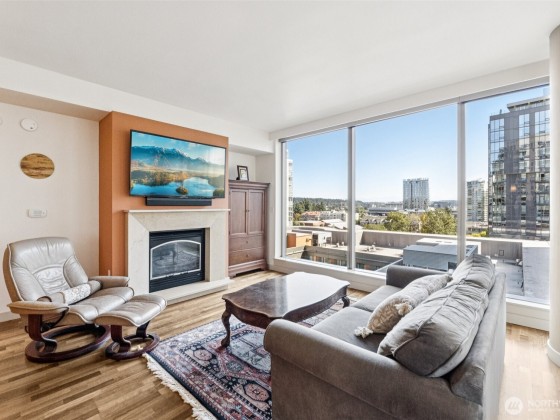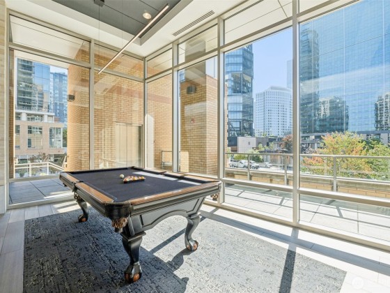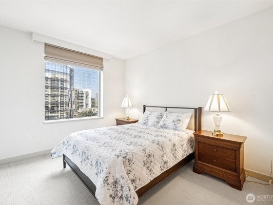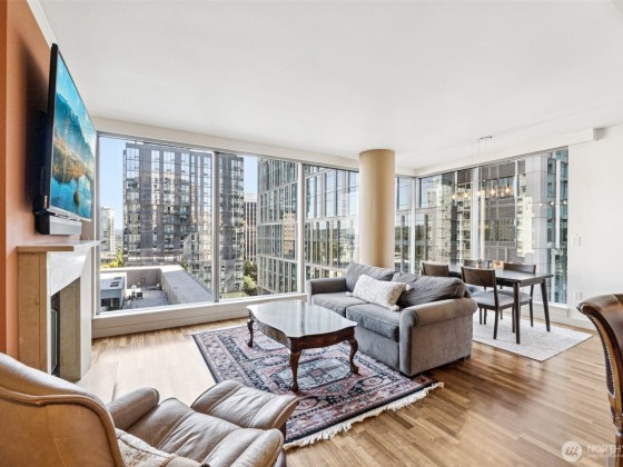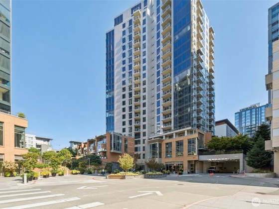 Luxury urban lifestyle awaits in the vibrant core of Downtown Bellevue. This 15th floor, 2 bed 2 bath SE facing corner residence boasts a spacious balcony, accessible from the dining room and primary suite. Floor-to-ceiling glass walls frame breathtaking city lights and Cascade mountain vistas. The open layout features rich hardwoods, slab granite counters, a gas FP, and automated window shades in the living and dining rooms. 2 secured parking spaces on P3 plus a storage unit on P2. Washington Square is ideally positioned just one block from Bellevue Square Mall. Resort-style amenities include a state-of-the-art fitness center, spa, owners lounge, game room, and concierge services. Steps from the Metro Transit Center.