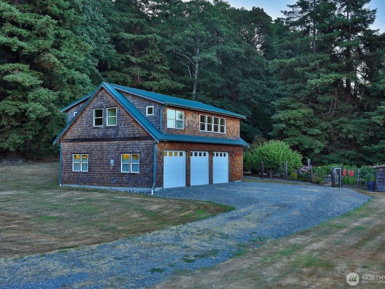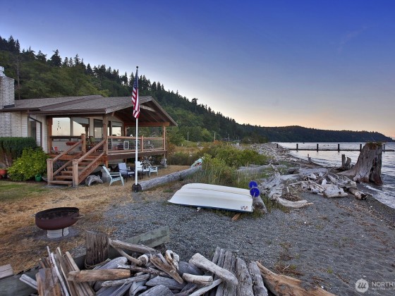Unique Waterfront Estate with Historic Significance. This property, once the site of a 1910 dynamite factory, offers 165'+/- of private frontage & deeded tidelands. This no bank compound features four possible living areas on approx. 1.73 acres with panoramic views of the Cascades, Mt. Baker, & Mt. Rainier. Located next to a premier boat launch, perfect for boating, fishing, kayaking & beachcombing. The main residence includes a 1-bed apartment with separate entrance and full kitchen—ideal for rental income, guests, or multi-gen living. Also included is a charming two-bedroom cabin & a detached 3-car garage with plenty of storage, plus an unfinished 1-bed apartment above, ready to be customized. The various use combinations are endless!