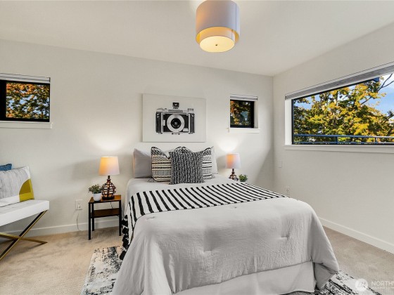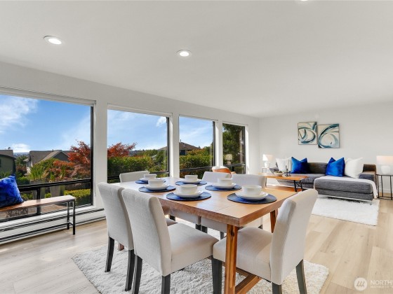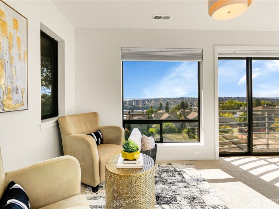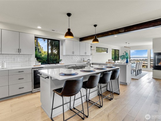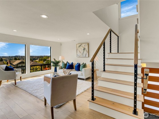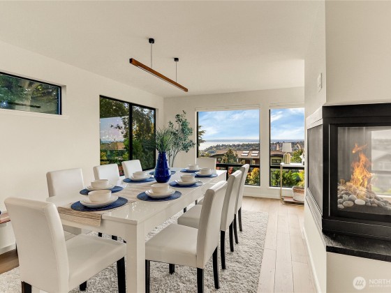 Rare opportunity combines luxury, views & walkability on the coveted Queen Anne Blvd loop. Floor-to-ceiling windows frame expansive western views of the Sound, with epic sunsets over the Olympic Mtns from all 3 levels. Top level boasts 3 bedrooms with lavish primary suite. Light-filled open concept main floor is an entertainer's dream with formal living & dining, spacious kitchen, cozy den, and 2 bedrooms. Downstairs, indoor/outdoor entertaining area with folding glass wall opens completely to beautiful backyard. Additional well-finished separate 1 bedroom apartment offers many options. Award winning Coe Elementary, Macrina Bakery, Ken’s Market and more just a block away, with easy access to QA Ave. Newly renovated, this home has it all!