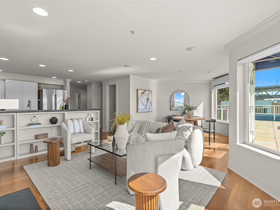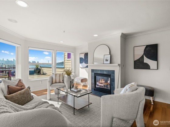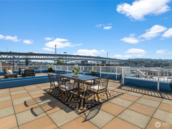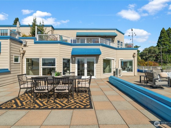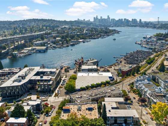 ~1,700 sf private terrace with Lake Union + skyline views ~1,193 sf of refined interiors—offering penthouse living without the penthouse price. Entertainer’s layout with quartz counters, Bosch + Asko appliances, cherry hardwoods, and a gas fireplace. Both bedrooms open outdoors for seamless indoor/outdoor flow. Nearly 2,900 sf of livable space for dining, gardening, or quiet mornings with coffee. Includes two secure garage spaces + storage. Boutique elevator building in Wallingford, just steps to the Burke-Gilman Trail, Gas Works Park, UW, Fremont + SLU. Rare opportunity for condo convenience with the lifestyle of a single-family home—an irreplaceable backyard in the sky. Buyer to verify all information.