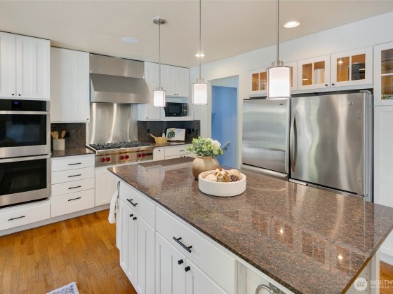 Don't miss this stunning private retreat in a beautiful park-like setting. Home features a chef’s kitchen complete w/ double ovens & refrigerators, 6-burner gas cooktop, granite countertops, & hardwood floors. Step into the luxurious primary suite feat. French doors, private balcony, WIC w/ custom built-ins, & a beautifully renovated ensuite bath. A spacious living room w/ gas fireplace creates the perfect setting for entertaining or relaxing. Lower level incl. flexible space ideal for gatherings, hobbies, home office, gym, or add'l storage. Outside, discover a lushly landscaped, fully private yard w/ hidden garden nooks, & a generous deck. Ideally located near the Burke-Gilman Trail & transit station for easy access to nature & the city.