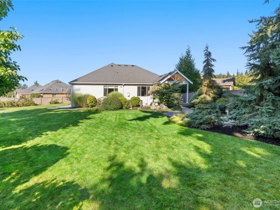 Rambler w/3-car garage in the sought-after Meadows gated community! The layout includes a living room w/cozy fireplace, well-appointed kitchen w/breakfast nook and a spacious primary suite with spa-like bath w/skylight & walk-in closet. Two more bedrooms, full hall bath and utility room w/cabinets & sink complete the interior. ADA-accessible home boasts fresh paint, new carpet, wood-wrapped windows, crown molding, heat pump (A/C), custom window treatments & whole-home portable generator. The fenced backyard retreat features a custom waterfall, covered patio w/hot tub, sprinklers, landscape lighting & shed. The neighborhood offers community open space and close proximity to beaches, boat launches, golf & State parks. Assumable 2.75% VA loan!