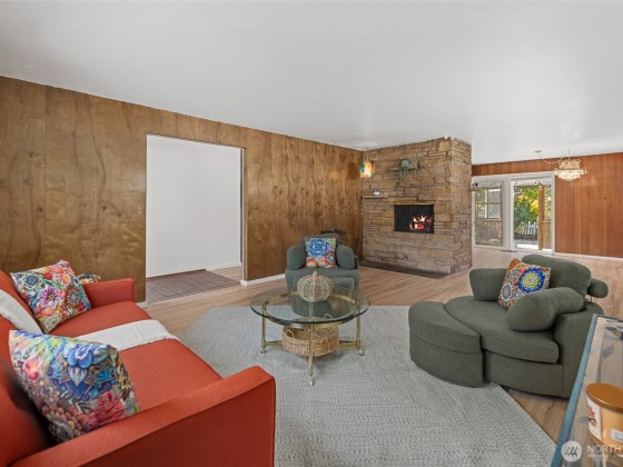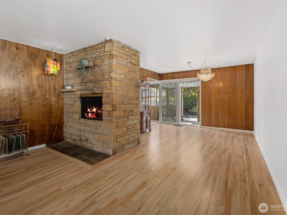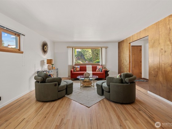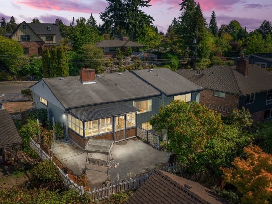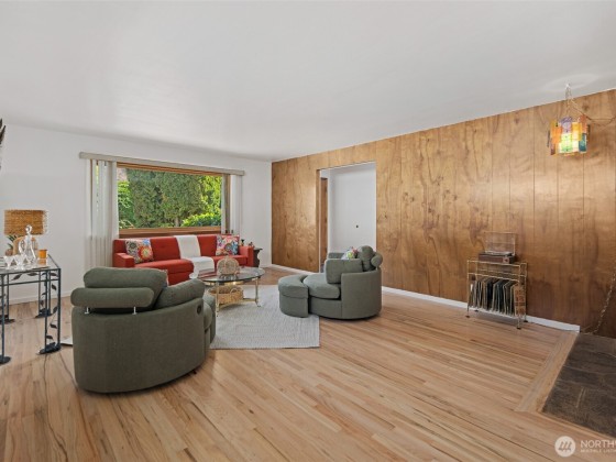 Mid-century modern gem 15 minutes north of Downtown Seattle! This estate-sale home is loaded with potential—sold as-is and ready for your vision. The main floor offers 3 bedrooms, 1.75 baths, and a spacious living area centered around a classic masonry wood-burning fireplace, and the original hardwood flooring. Entertain with ease on the terraced deck, or utilize the flat yard--a fully fenced outdoor space. Attached garage for convenience plus room to expand. The basement provides excellent opportunity for a rec room or rental income. Just a few blocks from Carkeek Park and vibrant the Greenwood neighborhood with restaurants, shops, art, and fitness clubs. Don’t miss this rare opportunity!