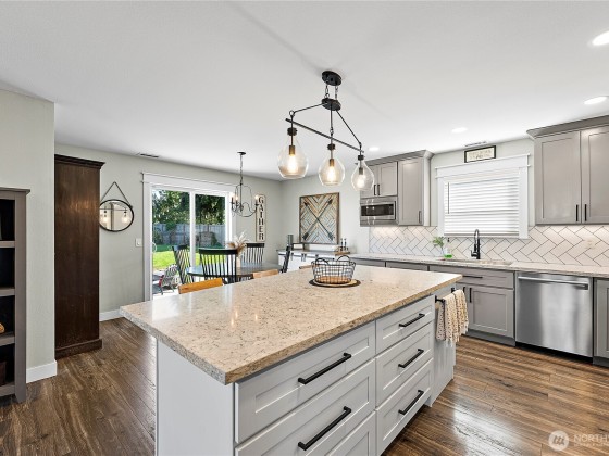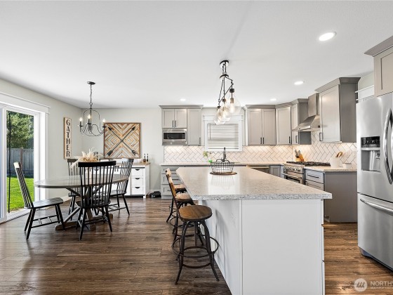 Beautifully updated and move-in ready! This 4 bed, 2.5 bath home offers 2,216 sq ft of stylish living on a spacious ¼+ acre lot. Features include an open-concept layout, gorgeously remolded kitchen with walk-in pantry, and dedicated dining area. Upstairs laundry adds convenience. The fully fenced backyard is perfect for entertaining with a large patio and hot tub. Oversized 2-car garage plus RV parking. Located in a desirable neighborhood near Frontier Park, shopping, dining, schools, entertainment, and JBLM. Enjoy a strong community feel and plenty of space inside and out—don’t miss this one!