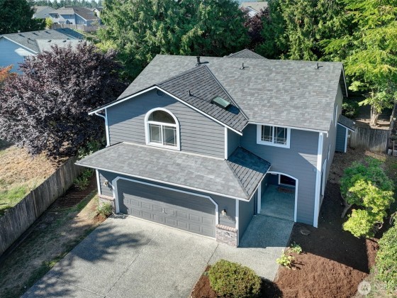 Tucked away at the end of a peaceful cul-de-sac & backed by a lush greenbelt, this move-in ready home is ready to welcome you! Step into beautifully refinished hardwood floors leading to spacious & bright living room with cozy gas fireplace. Dining room, with easy access to patio, is perfect for entertaining. Well-appointed kitchen boasts granite counters, stainless appliances & plenty of pantry space! Upper level hosts roomy primary bedroom, with bath featuring double sinks and soaking tub, + 2 more bedrooms, and Jack & Jill full bathroom! A brand-new roof, new carpet, new furnace, refinished floors, fully fenced yard, & garage parking checks all the boxes. Near commuter routes, top rated schools, & parks… you don’t want to miss this one!