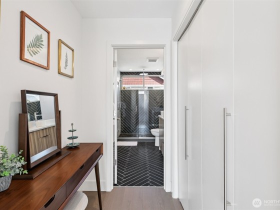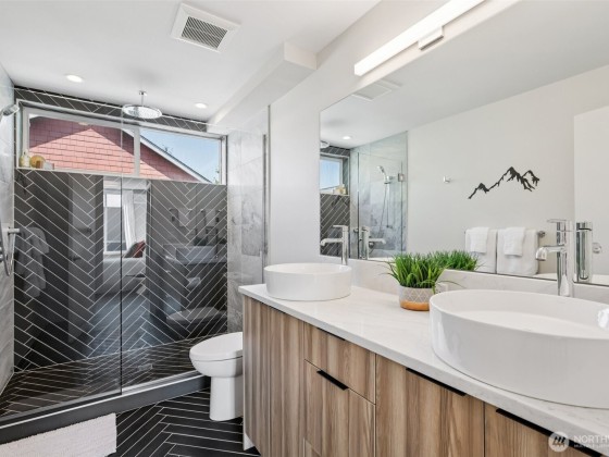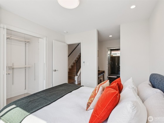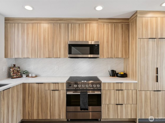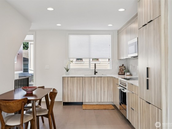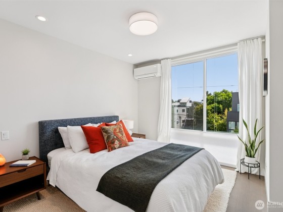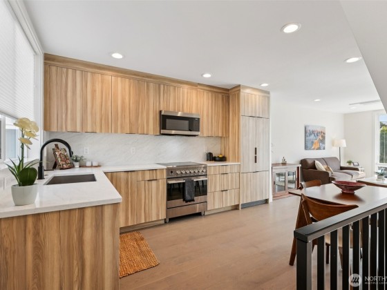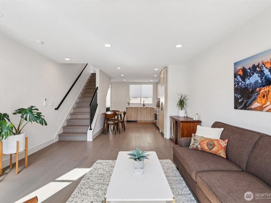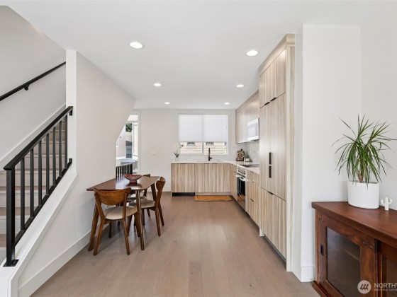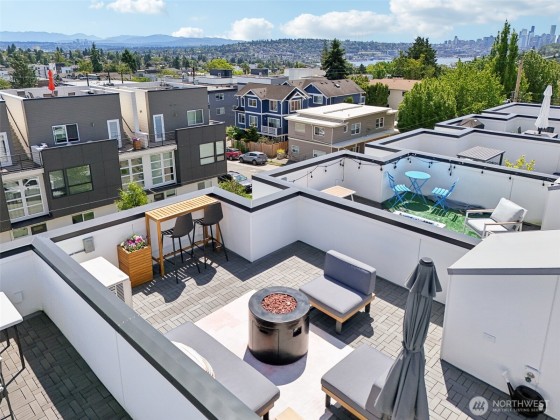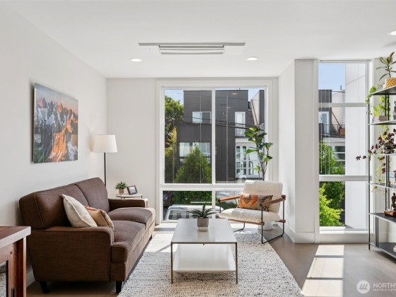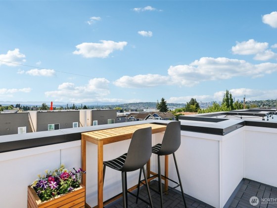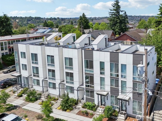 Beautifully appointed turnkey townhome offers a rare blend of style, comfort and location. Nestled on a quiet street just steps from vibrant Fremont Ave, local cafés and top-rated restaurants, this pristine home offers unbeatable access to dining, culture and amenities. Inside, tall ceilings and expansive windows fill the space w/natural light. The sleek kitchen features quartz countertops, custom wood cabinetry and premium Fisher & Paykel appliances. Spacious primary suite offers a generous walk-in closet and spa-inspired bath. Sweeping views of Downtown, Lake Union, Mt. Rainier and Bellevue from the spacious rooftop deck. EV-ready attached garage w/storage, custom shelving & bike rack. No HOA. Pre-inspected. An absolute must see!