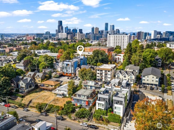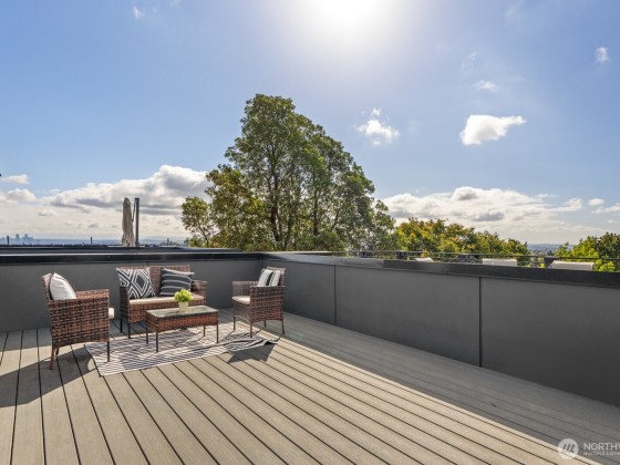 Owner-Paid 4.99% 7-year ARM for limited time, terms apply! Wanting a view and want to live in the city? Look no further, the 2 bed, 1.75 bath home has what you are looking for and more. Open floor plan with natural light beaming through the large windows. The main floor features a beautifully sized bedroom and bathroom. On the sec floor vaulted ceilings and kitchen living area. The upstairs boasts of another wonderful bdrm and attached bath. Enjoy the AC in the summer with mini splits throughout. This prime location has a gorgeous roof-top entertainment with views of Lake Washington, Mt. Rainier, Cascades and Bellevue. Easy access to freeways, many highly desired amenities. Come thrive in your new home in the heart of the Emerald City.