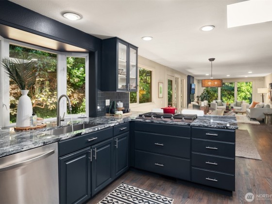 Welcome to Mercer Island's South End. Located on a cul-de-sac street, this property possesses multiple decks and patio space to take full advantage of the quiet, peaceful location. Upon entering the front door, one cannot help but notice the natural light flooding in through the multiple skylights and two story south facing windows.Re-finished hardwoods and new carpet bring a fresh new feel to this home in addition to an updated kitchen and bathrooms. Two main floor fireplaces help to establish the warmth needed for these up-incoming Fall days. Following the stairs to the bottom level showcases the 2+ story volume seen at the first floor gathering area. A generously sized bonus room extends the possibilities for what this home has to offer