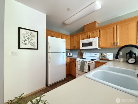 Step inside this charming two bedroom, 1.75 bath Sunrise West condominium offering 961 ft.² of inviting living space. The floor plan is filled with natural light, perfect for relaxing or entertaining. A spacious living room with a soft accent wall flows seamlessly into the dining area & out to your private balcony. The thoughtfully designed kitchen features warm oak cabinets, Updated hardware & plenty of counter space. Retreat to the stylish primary suite with its own private bath, while the second bedroom is ideal for guests, a Home office, or creative space. Conveniently located near NAS Whidbey, shopping, dining, bus routes, & outdoor activities. This home blends, comfort and convenience. – your Whidbey Island lifestyle awaits.