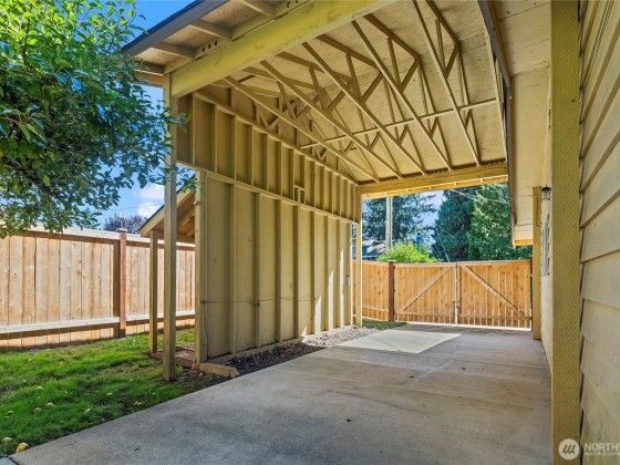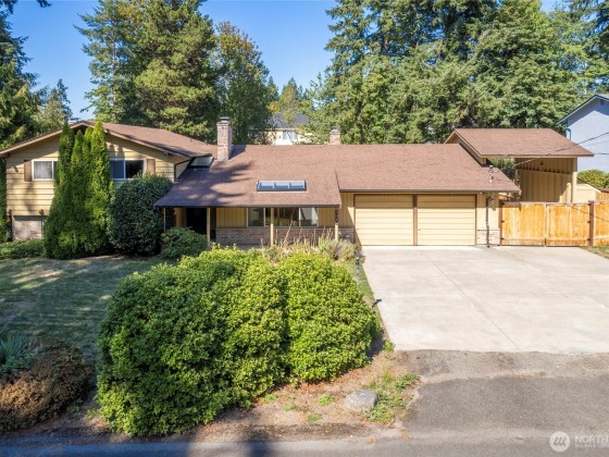 Set on a private, wooded corner lot, this home offers comfort and functionality. The fully fenced yard with multiple flower beds and gates pairs beautifully with a spacious, partially covered patio with outdoor speakers for year-round enjoyment. Recent improvements include a new fence, new furnace, heat pump, and air conditioning. The lower level provides a separate living space with a den and a private entrance—ideal for guests or a potential ADU. Skylights and large windows fill the home with natural light, while the primary suite features double closets and its own deck. A tall carport offers excellent RV parking, and accessibility features add extra convenience. Conveniently located close to freeways and shopping!