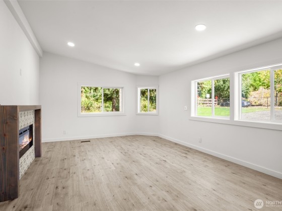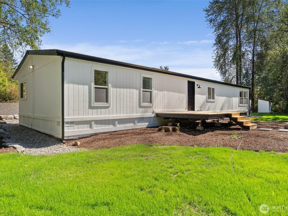 Remodeled home on 4.27 acres offering exceptional privacy. Updates include new flooring, new windows throughout, fresh interior/exterior paint, modern lighting, upgraded doors, & stylish hardware. The home offers two inviting living spaces, one w/ cozy electric fireplace. Inside are three generous bedrooms, incl. a primary suite w/ spa-like bath w/ tiled walk-in shower & dual vanity. The guest bath is also fully updated w/ tiled tub/shower surround. The open-concept kitchen shines w/ new white cabinetry, quartz countertops, stainless steel appliances, & full tile backsplash. Step outside to enjoy new decks front & back, plus fresh landscaping, brand-new roof & gutters. Conveniently located near I5, shopping, dining, & short commute to JBLM.