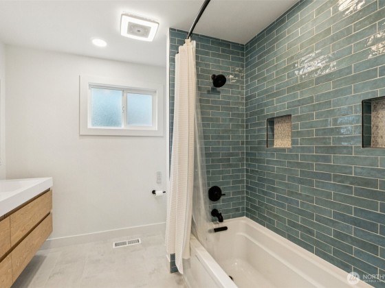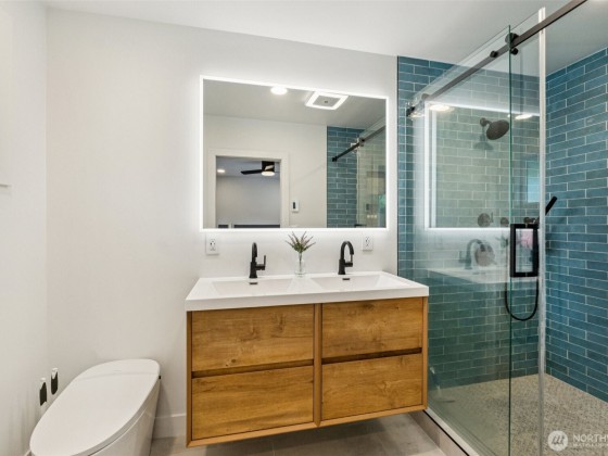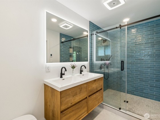 Now offered at a new price - come see the value this home provides! Completely remodeled 4 bedroom, 2 bath modern rambler in Kirkland with over $100K in updates. Attached two-car garage with oversized driveway in well established neighborhood. Bright interior that features upgrades including new electrical throughout with a larger 200-amp panel, new plumbing, smart Studio appliances, state-of-the-art bathrooms with heated floors, solid core doors, and luxury vinyl plank flooring throughout. Central A/C provides comfort year-round. The backyard offers mature fruit trees and a storage shed. Conveniently located near I-405 & within Northshore School district. Move-in ready and thoughtfully updated throughout. Don't miss this great opportunity!