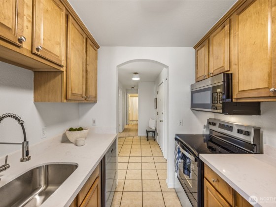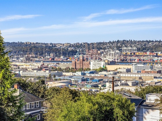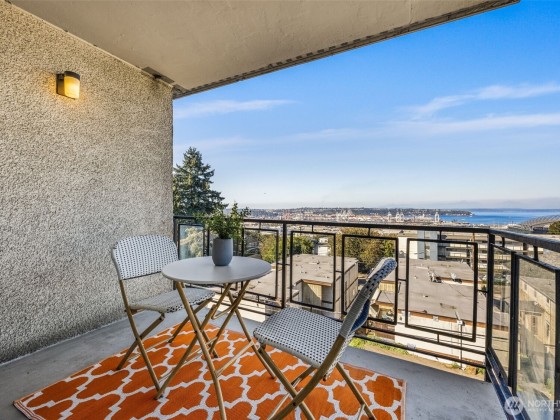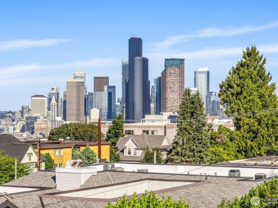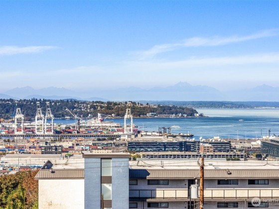 Enjoy sensational westerly views of Downtown, the Stadiums, the Industrial District, Elliott Bay & the Olympic Mountains from this top floor, North Beacon Hill corner unit condo. This newly updated 2 bedroom, 1 bath home boasts new flooring, stainless steel appliances, updated cabinetry w/ new quartz countertops, lighting and freshly painted walls throughout. Enjoy the views from either the open-air deck or the spacious living and dining room areas. W/D in unit. Easy access to the light rail station & all the eateries of N. Beacon Hill. Boutique sized, well maintained building w/ only 16 units. 1 dedicated parking & storage space included. Low HOA dues at $386 per month which cover water, sewer, garbage, common area maintenance, insurance.