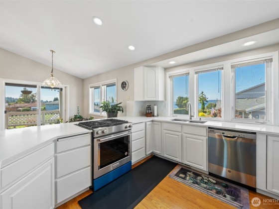 Minutes from downtown Des Moines and Marina, this view home blends space, light and location. Open main level frames sweeping water views and flows to a bright kitchen with quartz counters and stainless appliances. Main-floor primary suite and finished lower level that creates flex space for media, guests or multi-gen living. Off the main road on a private lane, with a rare 3-car garage, abundant parking and mature landscaping. An existing access easement makes a future ADU or studio an easy upgrade (buyer to confirm w/City). Commuter-friendly to 509, I-5, Sea-Tac & light rail.