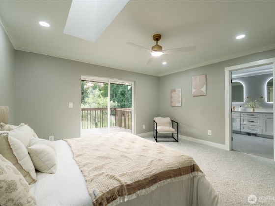Experience serene Northwest living on 5 acres at the end of a quiet dead-end street. This updated home is set in a park-like setting with sweeping mountain views from the front. Inside, soaring ceilings, expansive windows, and an open layout fill the home with light. The chef’s kitchen boasts custom cabinetry, quartz counters, and premium appliances—ideal for entertaining. The primary suite offers a spa-like bath, walk-in closet, and peaceful views. Outdoors, enjoy landscaped grounds, rolling lawn, and natural beauty that make this feel like your own private retreat—yet just minutes from Bellingham amenities, trails, lakes, and I-5 access for easy commuting. Plus, a 1,100 sqft shop with endless possibilities for hobbies, storage, etc.
