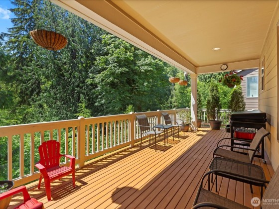 Move in ready Snohomish home! New LVP flooring on main, fresh interior paint throughout. Multi-generational potential in daylight basement [1 bed & 3/4 bath] + large rec room. 5 bed/3.5 bath + flex space/loft. Open kitchen w/SS appliances, slab granite, touch faucet & insta hot, island w/ bar seating. Spacious dining area w/doors out to covered deck, perfect for all seasons! Inviting great room w/gas fireplace. Fully fenced backyard, patio w/privacy screen, gate to add'l property backing to NGPA. Garage includes custom cabinets/workbench. Generous storage, up/down shades, ceiling fans throughout. H/C hose bibs, leaf guard gutters, storage shed. Snohomish School District! Community park, close to amenities. EZ access to commuter routes!