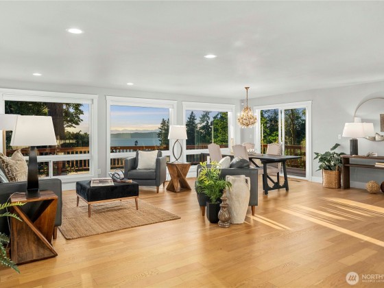 ENDLESS VIEWS! SELLER FINANCING! First time on the market, this home offers you spectacular views of sunsets, the Olympic Mountains, and the Puget Sound from a lush setting. Lives NEW - Extensively remodeled in 2021, highlights include a wraparound deck that takes full advantage of the timeless Pacific NW vistas, while a spacious great room floor plan offers large windows to fill the central living area with abundant natural light. You’ll love the serenity of this community, with close proximity to the immensely popular Saltwater State Park for outdoor recreation & relaxation. Sit almost anywhere to bask in the incredible views. Rustic Contemporary Elegance, one-level living! Perfect snowbird with added security features, great gardener.