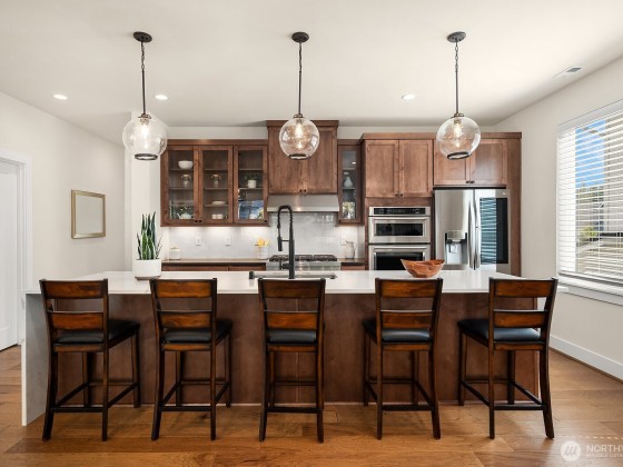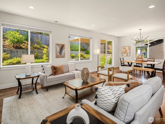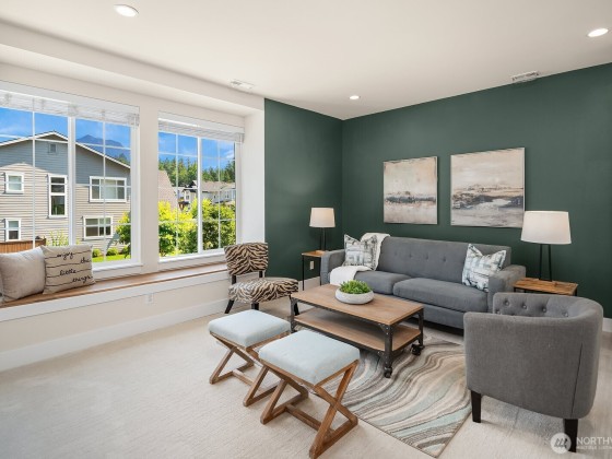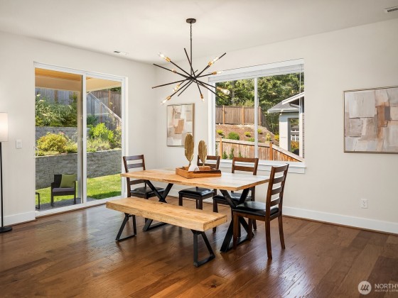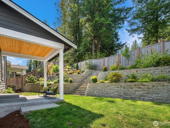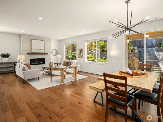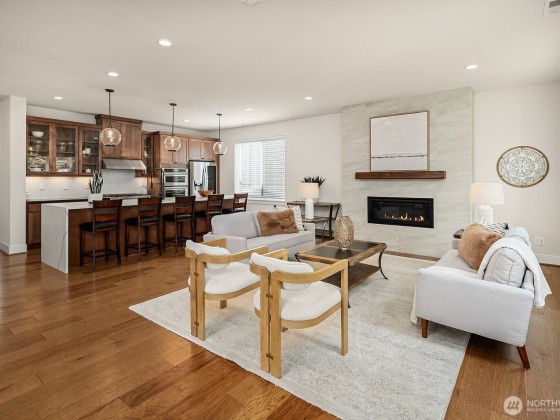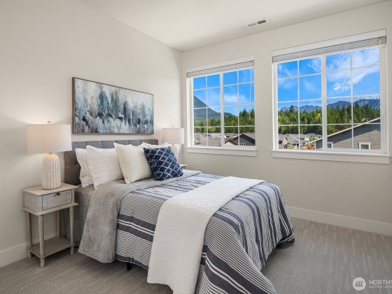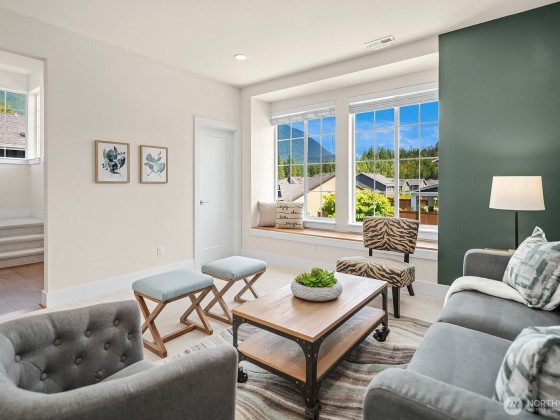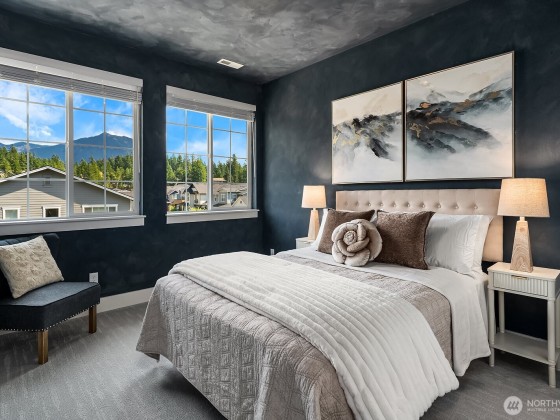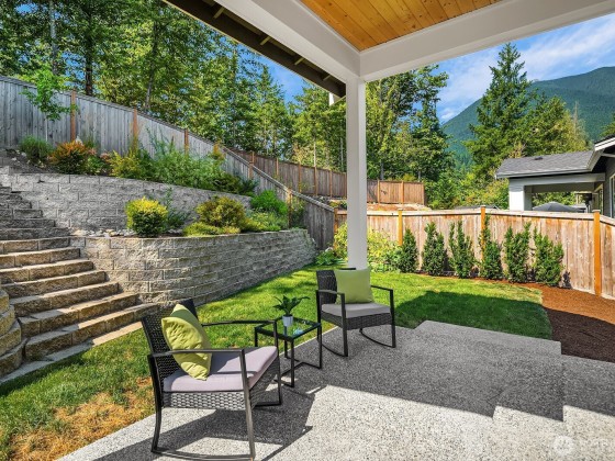 Rising above the rest with stunning mountain views and exceptional craftsmanship. This 5-bed contemporary home is impeccably maintained & upgraded throughout, it offers true move-in perfection. Highlights include hardwoods throughout, a tiled spa-inspired ensuite, designer finishes, A/C, EV charger, & whole-house Generac generator for peace of mind. The versatile lower level is ideal for multi-generational living or guest quarters. Outdoor living shines w/ a covered patio, terraced & private backyard, w/ river & trail access just moments away. Come see what North Bend has to offer — Award-winning schools to endless outdoor adventures. A rare opportunity to enjoy elevated living with comfort, style, & convenience all in one.