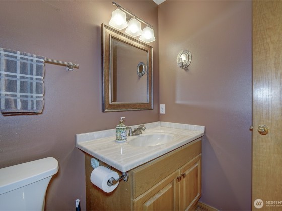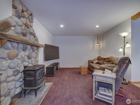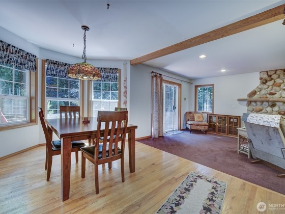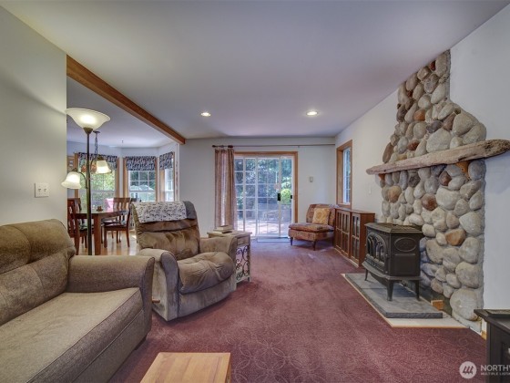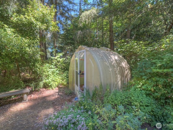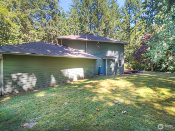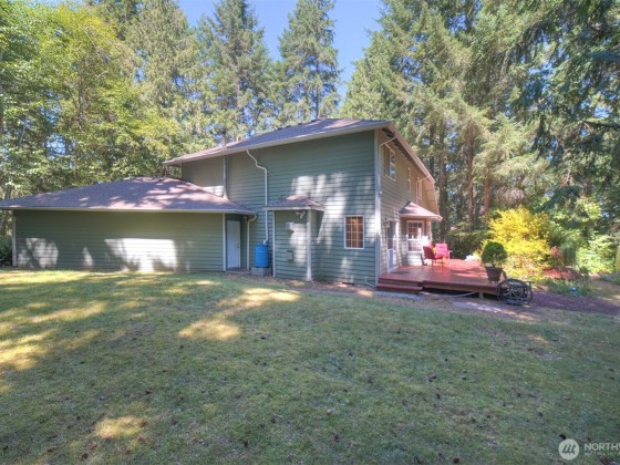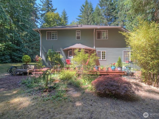 Unbeatable Location & Privacy! Tucked away on a serene 0.75-acre lot less than 3 miles from downtown Poulsbo, this 2,456 sq ft home offers the perfect blend of peaceful country living and close-in convenience. Enjoy complete privacy—you won't see your neighbors—and a true Northwest lifestyle. This 3-bedroom, 2.5-bathroom home features a welcoming covered front porch and a spacious 12' x 30' back deck ideal for relaxing or taking in the surrounding nature. Inside, you'll find vaulted ceilings, skylights, a cozy gas fireplace, forced air heating, and an oversized garage. The luxurious primary bath includes heated floors, and the laundry is conveniently located upstairs.