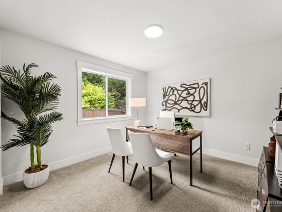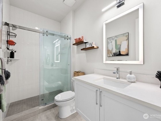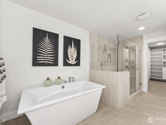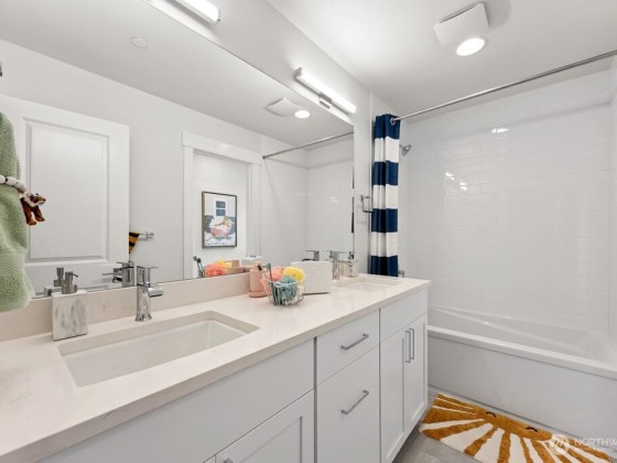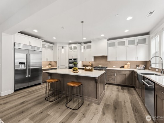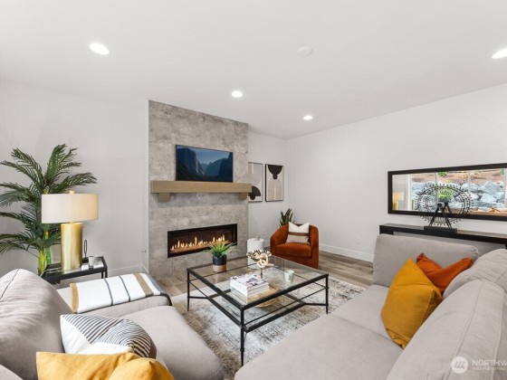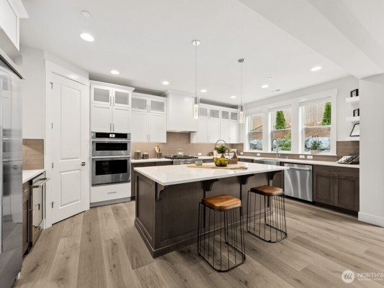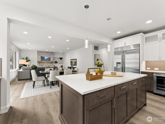 50K BUYER BONUS on our popular 3023 plan! The main floor offers a spacious, light-filled great room with fireplace, and a chef's kitchen with quartz counters, Huntwood soft close cabs, beverage fridge, gas range/oven, wall mounted oven/micro, pantry, & full height tile b/s. JennAir Rise appliances, w/ refrigerator included. Large main-level bedroom/office & 3/4 bath. 2nd floor primary BR and ensuite with heated floors, floating vanity, backlit mirrors, huge shower, soaking tub, & custom closet. Three more bedrooms, full bath, large bonus rm, & utility rm. 2 car garage, full fence, EV charger, & AC/heat pump. Private, fully landscaped, irrigated, & low maintenance yard. Northshore SD & easy access to Seattle & Eastside. Move in ready!