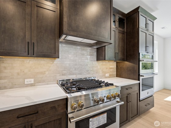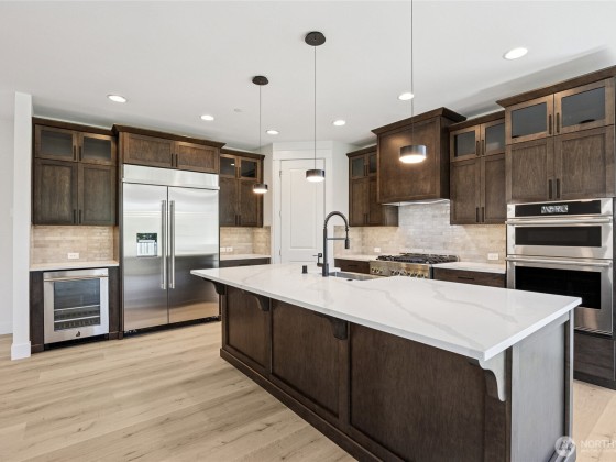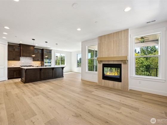50k BUYER BONUS! East-Facing & our largest plan w/3921 sq ft of flexible living, that backs to NGPA. Main floor offers spacious great rm w/dramatic double-sided FP, covered outdoor living & peaceful views. Wide open kitchen with quartz counters, soft close cabinetry, JennAir Rise appliances, pantry, beverage fridge, and more. Office/den & 1/2 bath round out the space. 2nd floor primary BR's ensuite has heated floors, floating vanity, backlit mirrors, huge shower, soaking tub, & 2 custom closets. 3 more BRs, full bath, large bonus rm, & utility rm. Lower level Walk out basement w/ rec rm, 5th BR, 3/4 bath, and covered deck w/ yard access. 2 car garage, full fence, EV charger, AC/heat pump. Northshore SD & easy access to Seattle & Eastside.