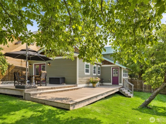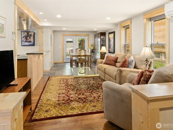 Welcome to this inviting 3-bedroom, 1.75-bath home offering a perfect blend of comfort and modern updates. The open concept living and dining area flows into a stylish kitchen with granite counters and stainless-steel appliances. A spacious utility/mud room provides ample storage, while radiant floor heating and a dual-head mini-split heat pump ensure year-round comfort. French doors open to a large fully fenced yard featuring a spacious deck and immaculate lawn with in-ground sprinklers, plus a garden area with raised beds ideal for outdoor living. A detached two-car garage with alley access needs work but adds convenience. Within walking distance to historic downtown Roslyn and Teanaway Community Forest Trailhead.