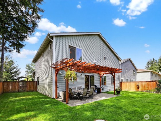 PRICED TO SELL! Meticulously maintained 3-bed, 2.5-bath home with standout upgrades and room for everything! The chef’s kitchen boasts 42” pull-out cabinets, quartz counters, a custom backsplash, wine rack, and a massive walk-in pantry. Formal dining with French doors, upgraded flooring, and a cozy fireplace in the living room. Stay cool all summer long with central A/C! Upstairs, the spacious primary suite features a second fireplace, jetted tub, dual vanities, and a large walk-in closet. Step outside to your fully fenced backyard oasis—extended patio, pergola, water feature, and lush landscaping. Perfect for relaxing, working, or entertaining!