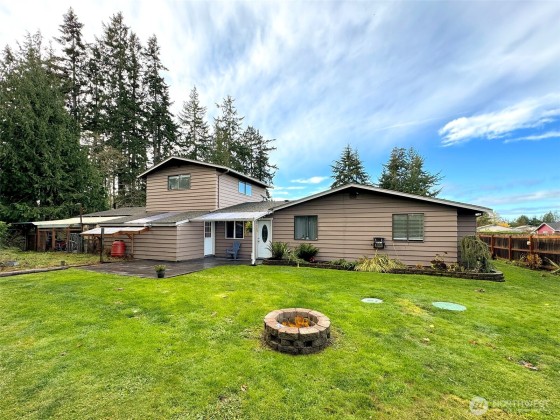 Tucked away in a tranquil, quiet neighborhood, this home boasts beautiful mountain views of the Olympic Mountains, offering a picturesque backdrop for daily living. A nearby creek adds a soothing natural touch, while the Olympic Discovery Trail, just a couple miles away, invites outdoor adventures. Inside, a warm woodburning fireplace anchors the living space, perfect for cozy evenings. Entertain effortlessly on two expansive patios, ideal for gatherings or relaxing. The home features a versatile bonus room upstairs, perfect for a home office or guest suite, and a spacious 2-car garage for ample storage and convenience. This property is a perfect blend of natural beauty and modern comfort.