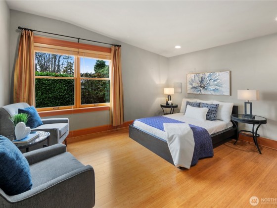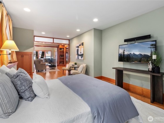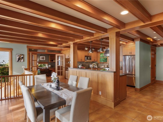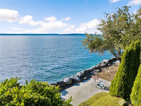 Discover this Perkins Lane waterfront sanctuary perched above 81' of waterfront access. Enjoy breathtaking views of the Olympic Mountains + Puget Sound from every room and four separate deck spaces. With two fireplaces and radiant bamboo + hardwood floor heating, comfort is paramount. Maintain energy efficiency and low utility costs due to the solar panels installed in 2022 + brand-new water heaters. The main level boasts a primary suite & seamless open-concept living space including a chef's kitchen, powder room + office/den. The lower level MIL offers endless possibilities, while the home’s three entrances enhance accessibility. Get creative with the top-level bonus room well suited for a home office or fourth bedroom. Tranquility awaits!