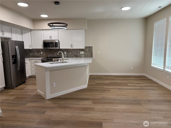 Welcome to this beautifully updated 2 story home! Located in the gated community of Village Commons, the Community offers a playground, basketball court and club house, w/ easy access to JBLM, shops and freeways. Home features an open concept floor plan with kitchen, dining, & living area w/gas fireplace on the main floor. Kitchen has all brand new stainless steel appliances, counter tops and large sink. Spacious bedrooms and large primary suite with a walk-in closet upstairs. New paint, blinds, light fixtures, new carpet and wood flooring throughout. Spacious 2 car garage with plenty of storage space. This wonderful home is ready for your own personal touches!