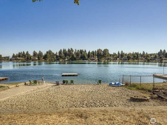 Superb home nestled 1 block from Angle Lake-Where you'll find your private, sandy waterfront beach & boat launch. Embark on sunset cruises while fishing from a stocked lake! Lively community has social events & is gr8 for strolling! Majestic, sun-drenched retreat situated on 1/4 ac manicured lot- DADU potential! Spacious kitchen w/all appliances. Primary bed boasts CALIF closet, jetted tub & deck access. Dramatic vaulted, exposed beam,tongue & groove ceilings & transom windows are eye catching! Impressive abode offers front deck; A/C; oversized pull thru garage w/shop & all features you desire. Versatile downstairs w/family rm,2nd FP, bath & dining-OR,2nd primary! Handy local-quick access to airport,light rail,freeway,Southcenter, Alaska HQ