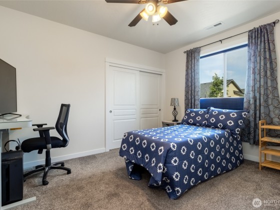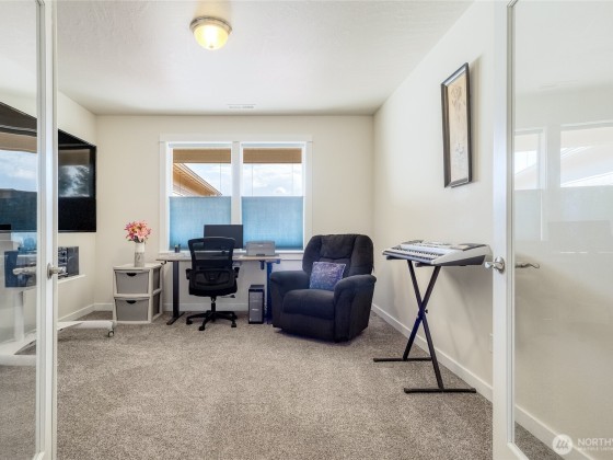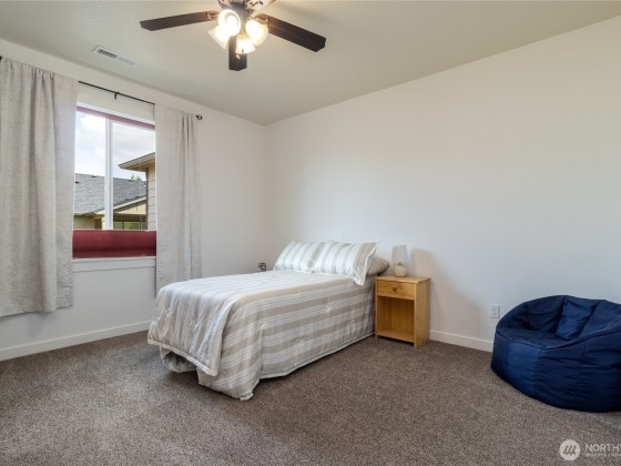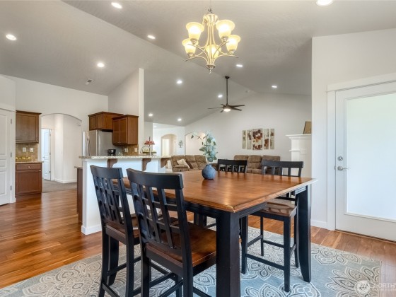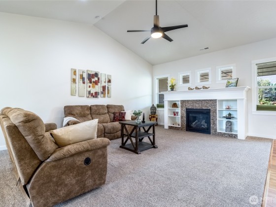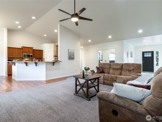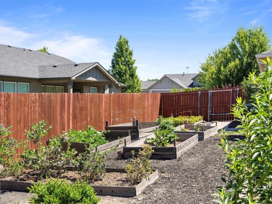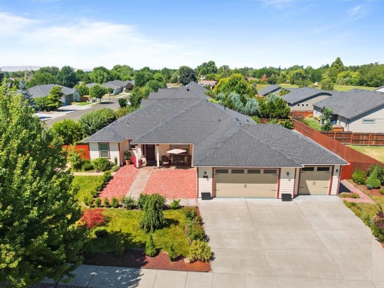 One-level home in a friendly neighborhood, close to the elementary & HS. This home features 3 bedrooms, plus 2 add'l rooms currently used as an office & den - both w/ closets, offering potential as extra bedrooms. The primary bedroom is a retreat of its own, w/ a spacious layout, en-suite bath, & huge walk-in closet. Features include: high ceilings, open concept, breakfast bar, soft-close cabinetry, granite counters, & gas fireplace. Perfect outdoor space w/ large patio in front & covered patio in back, & large yard that's a gardener’s delight, w/ many plants, flowers, fruit trees, vines, & garden beds, w/ UG sprinklers & drip. The 984 sq ft garage offers room to work, storage & plenty of room for 3 cars. No HOA. Pre-inspection completed.