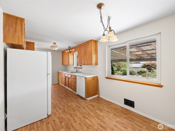 Check out a perfect starter home! Conveniently located minutes to I-5, this charming rambler is move in ready! From the new roof and fresh exterior paint to the updated electrical panel and new insulation (top and bottom), this home is ready for a new owner. The 8760 sqft lot features a fenced rear yard for Fido, NW style patio (it has a cover), and mature landscape w/ room for a garden. Inside, a fresh coat of paint, new LVP flooring, new countertops and more. The layout features 3 big bedrooms, 1 bath, formal living w/ picture window and wood stove insert, formal dining and a quaint kitchen w/ breakfast nook. Separate laundry room with access to rear patio and 2 car attached garage. Make this home yours, it has everything you need!