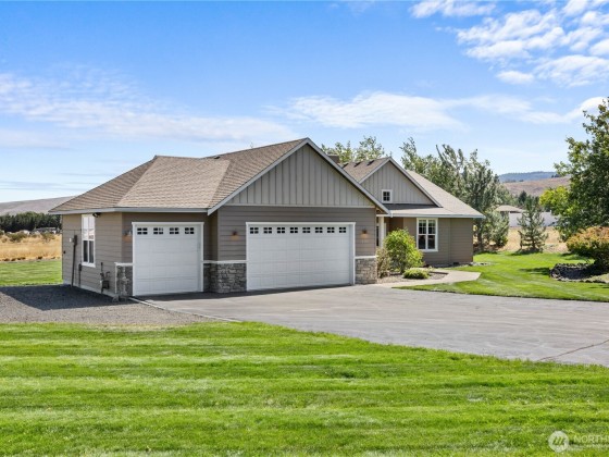 Set on 3 private acres in the sought-after westside of the valley, this 3-bedroom + den, 2.5-bath home offers space, beauty, and quiet surroundings. Mature landscaping, lush lawn, and in-ground sprinklers create a park-like setting, with stunning views in every direction. Inside, you’ll find granite countertops, a cozy gas fireplace, and large picture windows that fill the home with natural light. The spacious bedrooms offer comfort and flexibility, while the separate dining room is perfect for gatherings. Outside, enjoy a 3-car garage, two storage sheds, and room to breathe in a peaceful neighborhood with true privacy.