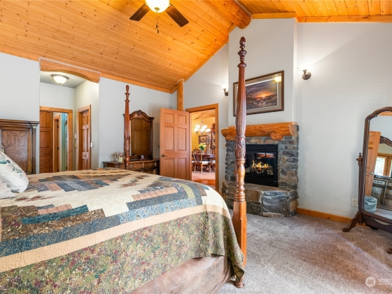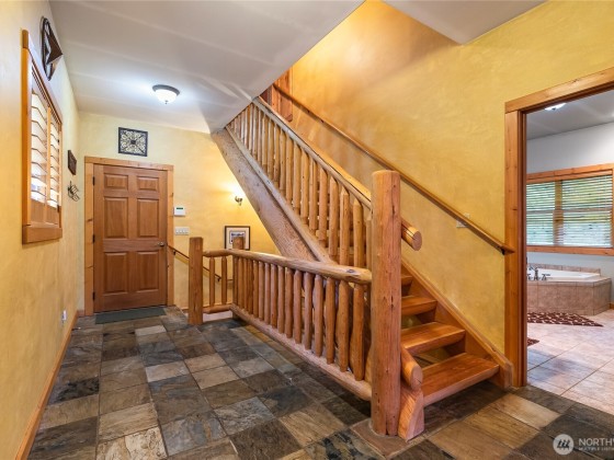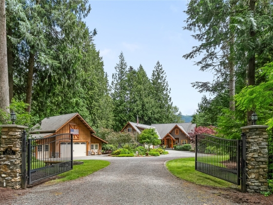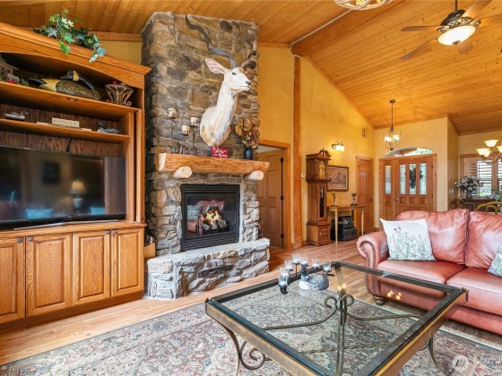 Nestled on 5 wooded acres, this remarkable custom stone & timber home seamlessly blends rustic charm with modern luxury. Featuring 3 bedrooms and 4 bathrooms, every space is designed with exquisite attention to detail. A gated entryway ensures privacy and tranquility, while the kitchen showcases honey oak cabinetry and granite countertops that carry into the baths. Radiant heat provides year-round comfort, and a hand-honed log staircase adds natural beauty. Ideal for gatherings, the home features four stone fireplaces throughout, creating warm and inviting atmospheres. Home is a gem! 1% lender credit(up to $7500) offered through my preferred lender, AmyBaker@movementmortgage.