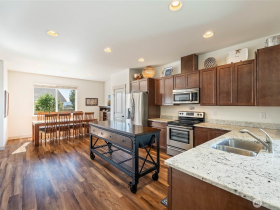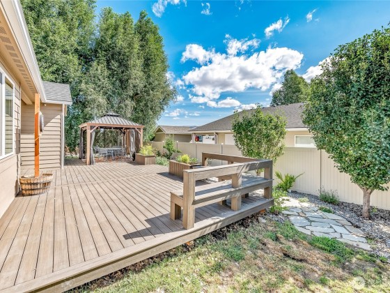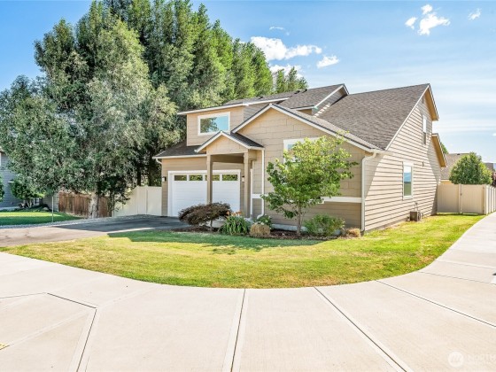Nestled on a quiet corner lot in Wenatchee’s coveted south end, this 4-bed, 2.5-bath home offers 2,213 sq ft of light-filled living space. Vaulted ceilings, large windows, and an open-concept layout create an airy feel throughout. The kitchen features granite counters, stainless steel appliances, and a spacious island—perfect for entertaining. The main-level primary suite adds comfort and convenience. Cozy up by the fireplace or relax on the patio with views of surrounding hills. Built in 2017 and move-in ready with a fully fenced backyard and 2-car garage.