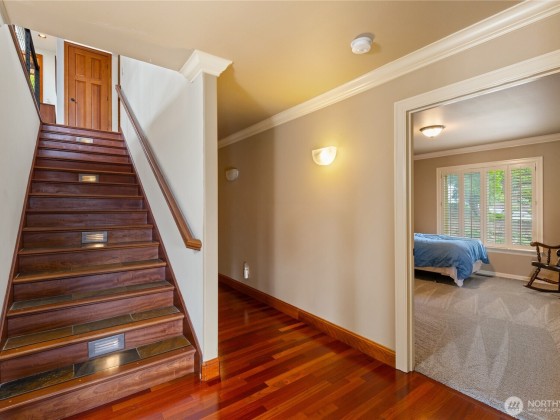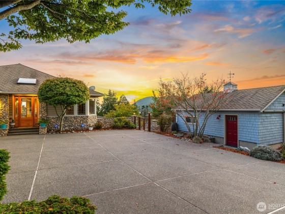 Welcome to this exquisitely updated 4-bedroom home, where high-end craftsmanship and thoughtful design shine at every turn. The main level offers effortless living with the primary suite, spacious living area, and a stunning remodeled kitchen featuring a trash compactor, microwave built into the island, and instant hot water at the sink. Sunlight pours through the home while a dedicated office provides the perfect space to work in peace. Enjoy serene views of Burrows Bay and the privacy of a small shared road with only a few neighbors. The lower level includes its own private entrance, a second kitchen, and laundry—ideal for guests. Additional features include dual laundry setups, a whole-house speaker system, and a central vacuum system.